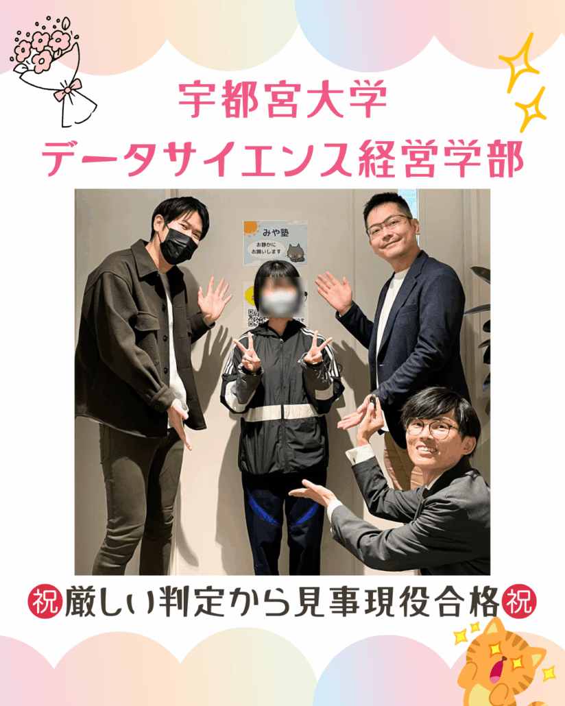 みや塾には受験に臨む学生たちのあらゆる不安や課題を解決できる人材と体制が揃っています。頑張る学生は是非みや塾に集まってください。一緒に頑張りましょう!!